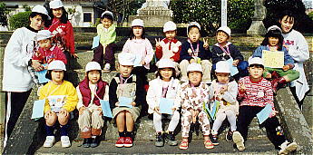 小学校に行くアップル組のみんなの中にも、0歳からずっと保育園に通ってきた子もいます。 お家でお父さんやお母さんの愛情をいっぱい受けながらまた保育園で友だちや保育者とかかわりながら一緒にいろいろな経験をしていく中で表情も輝いて、いきいきと毎日の生活を送っていたように思います。 卒園式の日、力強くひとりひとりが卒園の言葉を言った時一段とみんなが大きくみえました。これからきっといろんなことがみんなの前にも起こってくるかもしれないけど、みんなならきっと大丈夫。 大好きな仲間と過ごしたことが、これからもずっとこころのなかに大切に刻まれていくのだと思います。 (98年度//99年3月) |