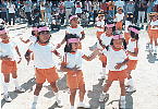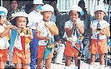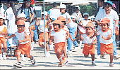 10月というのに、まだまだ暑い10月2日、子ども達の楽しみにしていた運動会もいよいよ本番。園庭のテントや万国旗が子ども達の気持ちを更に盛り上げている様子。 お父さんやお母さん、お家の人がいっぱい見に来てくれて、ちょっぴり緊張気味の子や、大はりきりの子・・・いろんな子がいるけど、どの子の顔も輝いています。