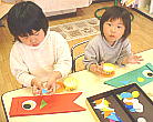 こいのぼりの製作をしました。 子ども達に目玉、うろこの部分をのりで貼り合わせてもらいます。 みんな上手に指先を使ってのりをつけ “ペッタン”と、くっつけていました。 出来上がったこいのぼりは矢車につけてもらい部屋に飾りました。 「これ○○のん」と自分のこいのぼりを指さして喜びます。 そのこいのぼりを家にもって帰るときも、なんともいえない笑顔でした (4/27) |