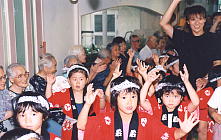 『阿波踊りだぁ!!』 さあっ、お盆がやってきました。 徳島のお盆と言えばモチロン阿波踊り。 13日の月曜日には、「助任・なかよし連」を作って東新町アーケードに繰り出します。 午前10:30〜の約1時間限定だけど、見かけたら応援してね。 (写真は8月2日、白寿園に呼んでいただき、踊りを披露したアップル組さん) (8/11) |