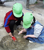 砂遊び、団子作り メロン組では、最近、団子作りにはまっている子が多いようです。 始めはなかなか丸く握ることができず、すぐにつぶれてしまっていた子も、今では名人級?! 保育士よりも上手に作っていますよ。 ![]() ![]() |